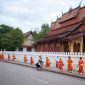 라오스 루앙프라방 여행에서 놓칠 수 없는 가장 큰 볼거리는 승려들의 아침 공양 ‘탁밧(탁발)’ 입니다. 불교 국가인 라오스의 아침은 승려들의 아침 공양을 시작된다고 해도 과언이 아닐 정도로 전국에서 탁밧 공양이 매일 열리고 있습니다. 해가 뜨는 시간(약 6시)에 맞춰 사원에서 탁밧을 알리는 북이 울리고 승려들이 이동을 시작하면 사람들은 집 주변 길목에 자리를 깔고 무릎을 꿇은 채 승려들을 기다립니다. 승려들이 도착하면 사람들은 준비해온 과일, 음료수 같은 공양물과 찰밥을 승려들에게 조금씩 나누어 공양을 합니다. 여행자 거리에서는 관광객들도 탁밧 의식에 참여할 수 있습니다. 아침 탁밧이 끝나고 나면 시내 중심에 있는 푸시(산)에 올라 루앙프라방 풍경을 감상하거나 여행자 거리에 있는 아침 시장을 돌아 볼 수 있습니다.